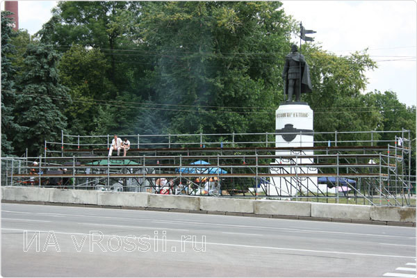 Автомобили гонщиков расположились на стоянке возле цирка. Трасса захватила всю центральную часть города - от администрации Центрального округа Курска до Красной площади: по улицам Сонина, Урицкого с выездом на Радищева, а затем вниз к месту старта по Дзержинского.