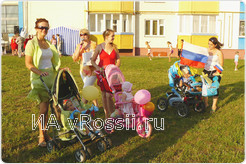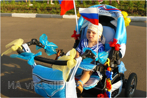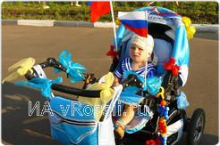Пока крохи мирно дремали в своих колясках, родители старательно украшали их "транспорт" подручными материалами. В ход пошло все: ленты, шарики. Многие не поленились сходить домой за необычными предметами, которым суждено было стать оригинальными аксессуарами. Например, семья Гриневых приспособила для украшения даже российский флаг. Надо сказать, что все их усилия были вознаграждены, и уже через 30 минут маленький Ванечка держал в руках плюшевого мишку.