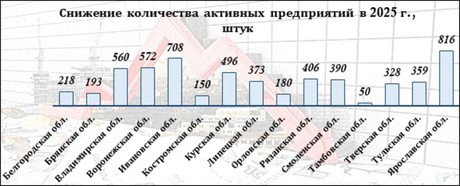 Увеличивается и количество "угасающих" предприятий. Уточним, что такими считаются компании, которые два года подряд сокращают штат наемных сотрудников в среднем на 15 и более процентов. За 2025 год число подобных хозяйствующих субъектов выросло на 39,3 тыс.