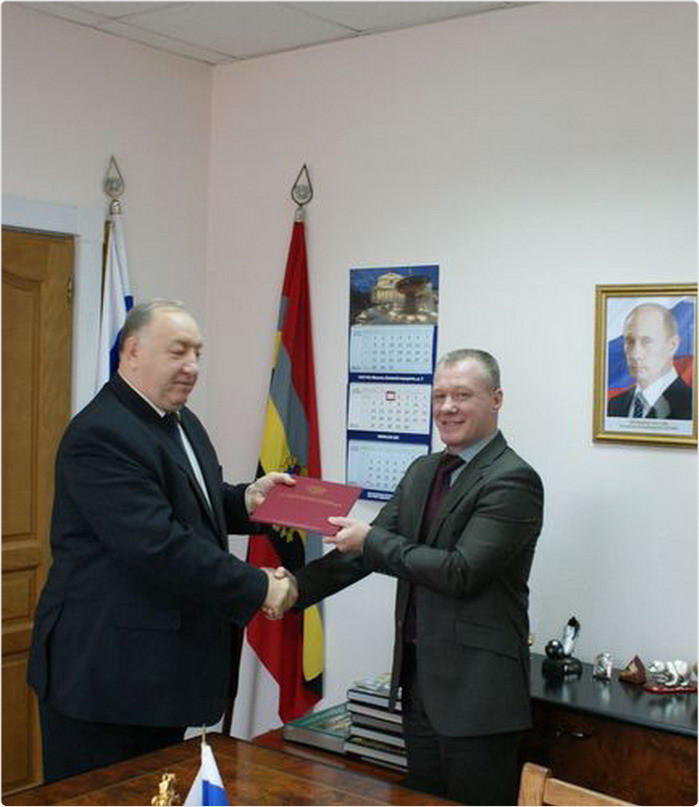 Все новости КРО ВПП "Единая Россия"Федеральный инспектор аппарата полномочного представителя Президента РФ в ЦФО по Курской области Валерий Кобзев вручил руководителю Региональной Общественной приемной председателя партии "Единая Россия" Д.А.Медведева, заместителю председателя Курской областной Думы Владимиру Сальникову высокую награду – благодарственное письмо Владимира Путина.