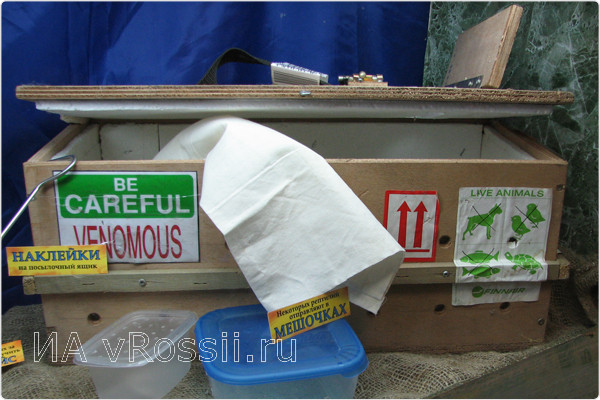 - К примеру, ящик, оборудованный для перевозки животных, сам по себе очень информативен, - рассказала корреспонденту ИА vRossii.ru Маргарита Денисова, методист экзотариума, - во-первых, наклейки говорят о том, что в ящике везут животное, причем, именно рептилию. Во-вторых, вентиляционные отверстия заделаны сеткой, чтобы не допустить случаев «побега» при перевозке. Каждая рептилия, отправляемая посылкой, располагается в индивидуальном боксе, также с вентиляцией. Некоторые отправляются в специальных мешочках.