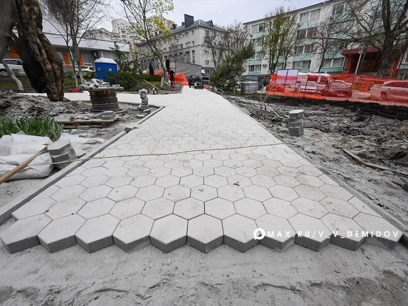 Завершается обустройство пешеходных связей, идет подготовка к монтажу уличного освещения. Также предстоит установить малые архитектурные формы – появятся качели, пергола, 9 скамеек, урны.