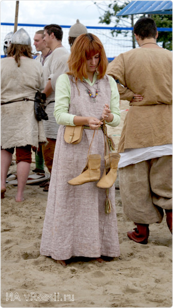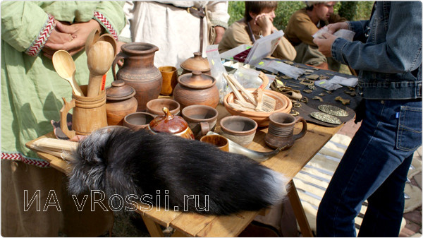 В своем кругу реконструкторы прозвали третий день фестиваля "днем туриста". И правда, зрители-туристы атаковали набережную реки Воронеж уже с самого утра. И неспроста. Как оказалось, у средневековых воинов есть, чем поживиться. Всевозможные гончарные изделия, предметы быта, интерьера, украшения и одежда - далеко не полный список изделий, которые могли приобрести гости фестиваля. Но товарные ряды - не самая главная достопримечательность Русборга: мирно прогуливающиеся вдоль набережной викинги еще более непривычное зрелище.