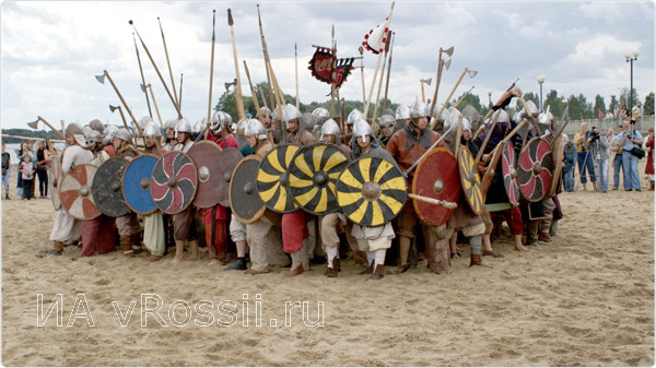 Кстати, ладьи, на которых приплыли "враги", были самые что ни на есть настоящие – точные копии средневековых, изготовленные силами военно-исторического клуба "Копье" на средства президентского гранта "Поддержка молодых инициатив".