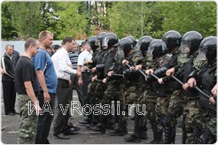 Kогда стало ясно, что предупреждения и увещевания не дали результата, в дело вступили сотрудники спецподразделений. Вначале были изъяты условные "зачинщики" и самые активные участники "беспорядков". Затем, перестроившись "клином", милиционеры ОМОН и спецроты ППС довольно быстро рассекли "толпу" и вытеснили ее за пределы "проезжей части". Kак пояснил руководитель занятия начальник отдела охраны общественного порядка УУВД по Липецкой области подполковник милиции Сергей Мамонов, на этой стадии силовой этап операции заканчивается, и дальше основную работу ведут дознаватели и следователи.